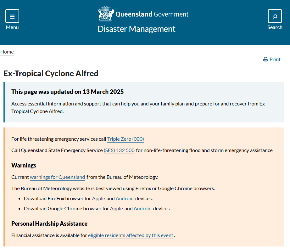 위 주정부 보조 신청은 https://www.qld.gov.au/community/disasters-emergencies/disasters/money-finance/eligibility-apply/tc-alfred-march-2025 링크에 방문후 주소를 입력 하시고, 원하시는 보조금을 신청 하시면 됩니다.